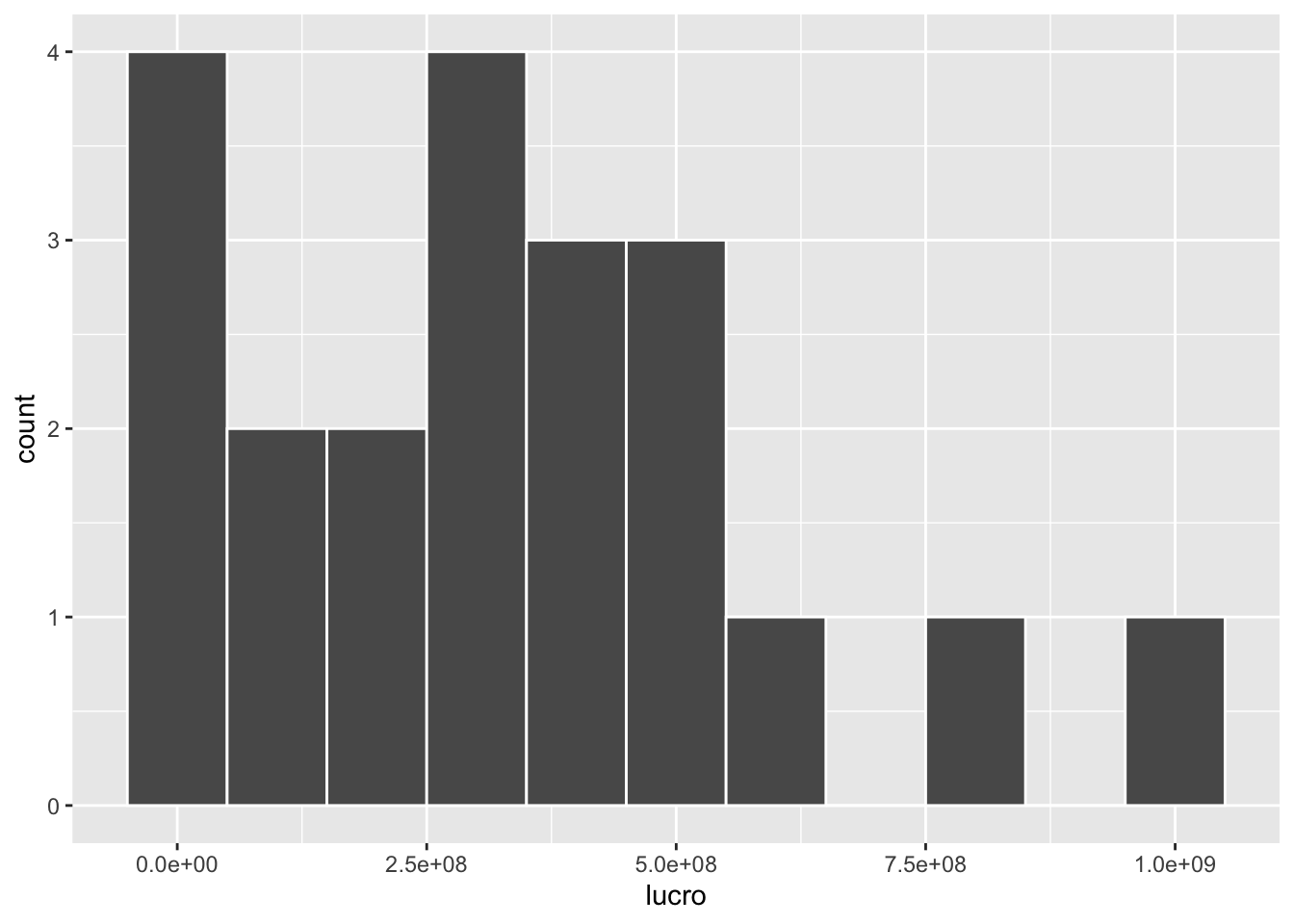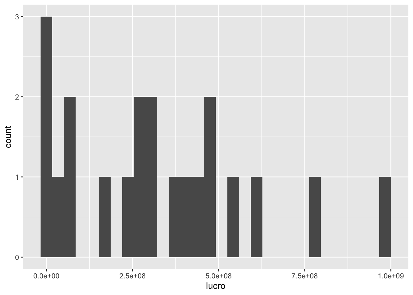 Veja que criamos a coluna lucro utilizando a função mutate() antes de iniciarmos a construção do gráfico. O fluxo base %>% manipulação %>% ggplot é muito comum no dia-a-dia.