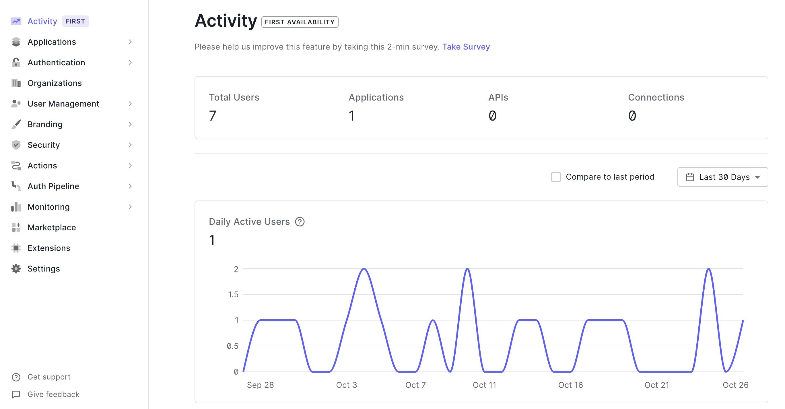 - Faça login no no site auth0.com usando a criada no passo 1. Você deverá ver uma página como a abaixo: