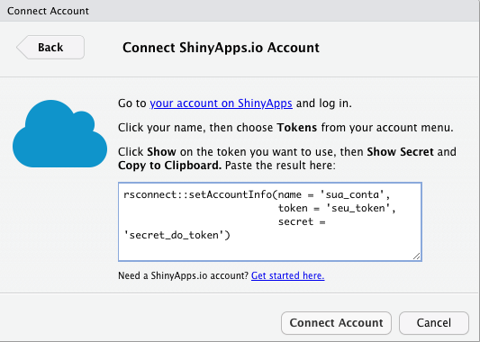 rsconnect::setAccountInfo(name = 'sua_conta',