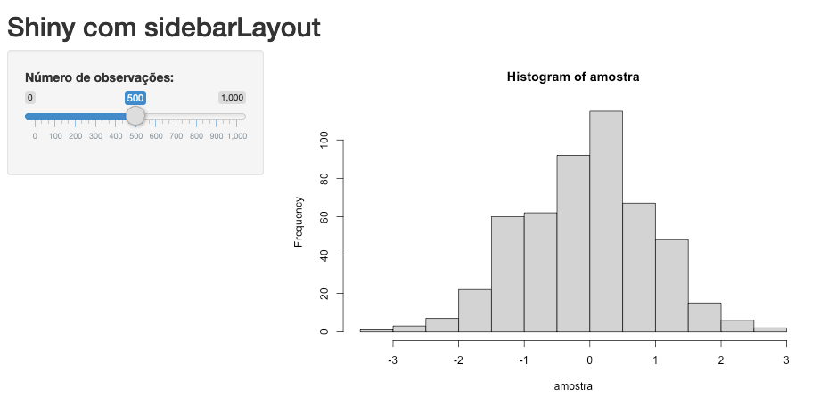 fluidRow() e column().Utilizando essas funções, podemos mudar o exemplo da seção anterior e construir o app a seguir: